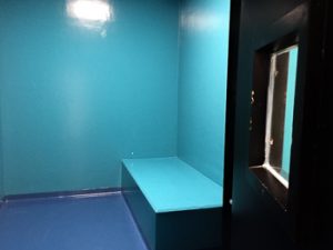 Een inkomhal met trappen, de onthaaldesk kan dienen als onthaal van een politie-onthaal, een bank, De Lijn…, een bureauruimte, een individuele cel met echte celdeur. Het ‘Café Noir’ bevat een muziek- en lichtinstallatie (800 watt geluid – tot 140 decibel). Er zijn tactische ruimtes met deuren die afgehaald en verwisseld kunnen worden. Er zijn anti-krasplanken aan de muren aangebracht om zo tegen de muur te kunnen werken (bv. fouilleren).