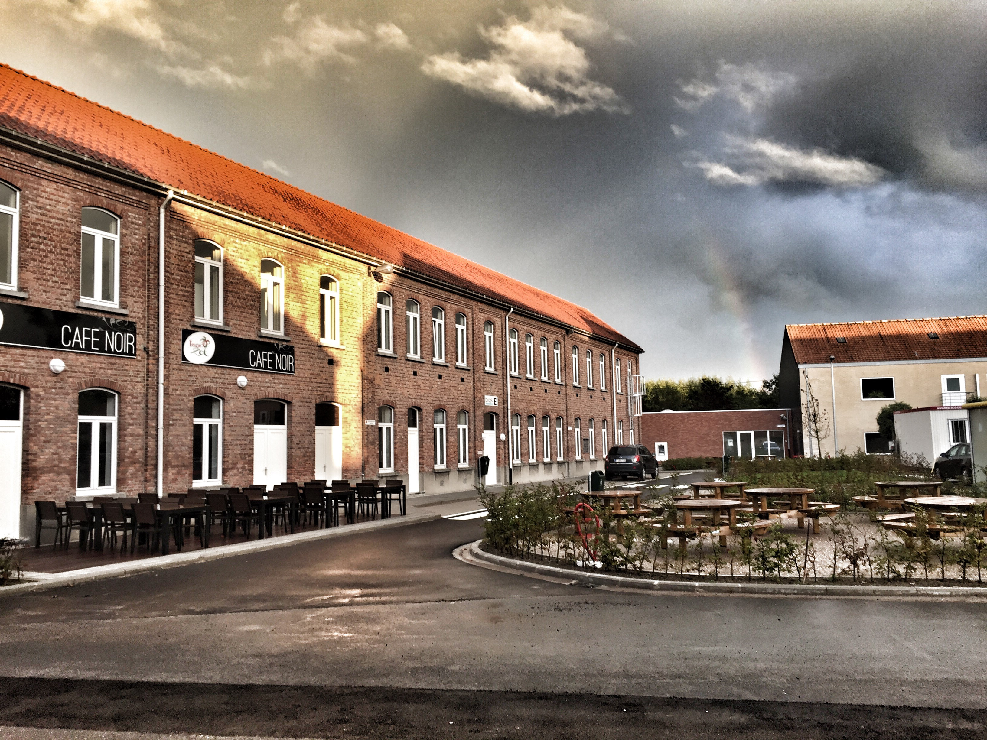 Ook buiten kunnen enkele scenario’s ingeoefend worden. Er is een terras aan Café Noir met een graspleintje, alsook een bushokje van De Lijn met busstrook. In een bijgebouw is er een bankautomaat aanwezig en een ruimte die voor verschillende doeleinden kan gebruikt worden.